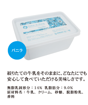 30年間ご愛顧いただいております、クリモト牛乳のアイスクリームが 新しいフレーバーと共にリニューアルいたしました。 販売当初から変わらぬ牧場直製造で素材の良さを最大限に生かした ピュアでコクのあるバニラアイスクリームです。 特にバニラアイスに関しては、弊社商品の特徴でもある 乳化剤 ・安定剤(卵も使用していません)を 入れないことで、 どなたにでも安心して食べていただける美味しさです。 乳化剤・安定剤を使用していないため 美味しく召し上がっていただける期間が短いですが、 「加えないことで失われない風味」 他では味わえない美味しさを是非ご賞味ください。 また今回のリニューアルを期にプレミアムチョコレートが仲間入り。 こちらも濃厚なチョコレート味に仕上がっています。 サイズもカップ120ml(6個・8個の詰め合わせ)が新たに加わり 従来の1000ml&2000mlの3サイズで販売いたします。 |